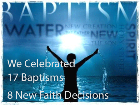 - The icing on the cake (we did have cake after the services to celebrate the weekend) was that there were 8 people who made new commitments in their faith to follow Jesus. Both the baptisms and the faith decisions is a picture of us living out the mission we are called to: Leading People Who Are Far From God To Be Followers Of Jesus. We have no idea of all that God wants to do through us as we continue to partner together to live out this mission.